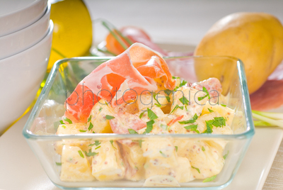Fresh home-made parma ham and potato saladOpis utworu: Fresh home-made parma ham and potato salad, with raw ingredients around with bowls and dishware on a tableAutor utworu: keko64© keko64 / PhotogenicaModel Release: brak danychKolekcja: PhotogenicaSłowa kluczowe utworu PHA0010809: zielonyróżowyczerwonybiałypółmisekprzystawkaziemniakcebulapysznyliśćmiska <naczynie>plastereksałatka <wielowarzywna>mięso <zwierząt>obiadprzekąskaoliwastółsałatka ziemniaczanaszynkaszynka parmeńskamięso wieprzoweposiłekszkłozdrowyświeżysłodkiwłoskidelikatnośćodizolowanyżywnośćwędzonykuchnia <danego regionu>WłochyświniaUtwór Fresh home-made parma ham and potato salad można kupić w agencji fotograficznej Photogenica na zasadach licencji Royalty Free. Wszystkie zdjęcia, grafiki, illustracje wektorowe i klipy video w microstocku można pobrać od razu po zakupie (po otrzymaniu należności przez bank zdjęć Photogenica). |